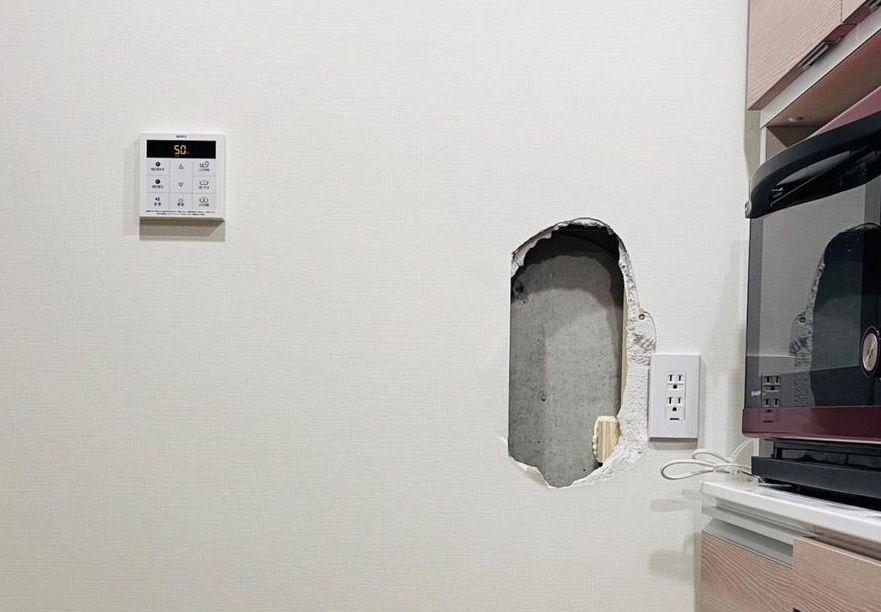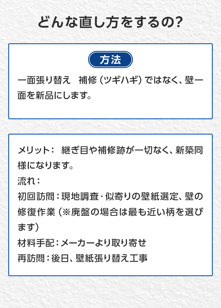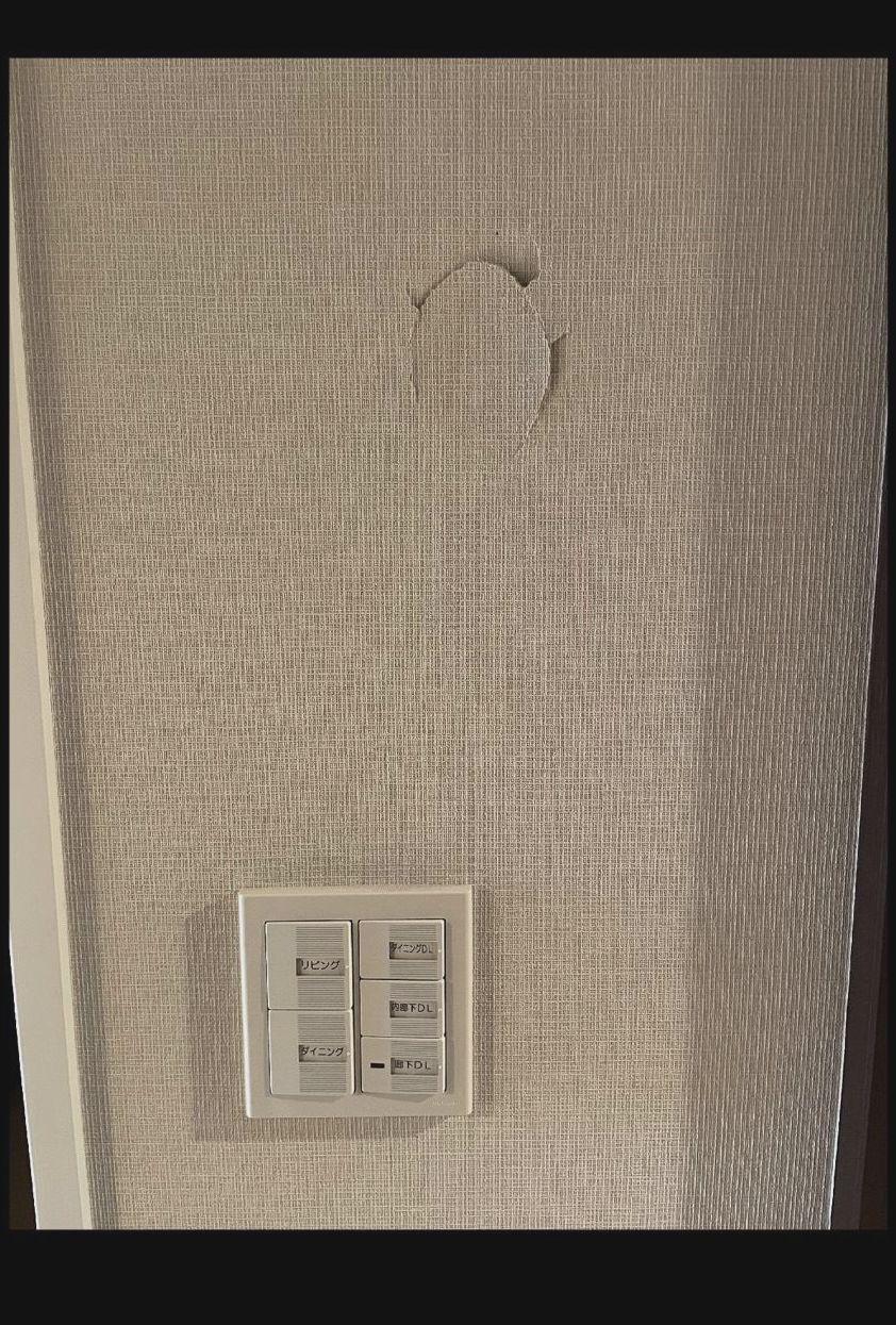 ピンポイント部分補修(リペア)目立たない場所から壁紙を移植して修復します。(移植元の部分には新しいクロスを張ります)